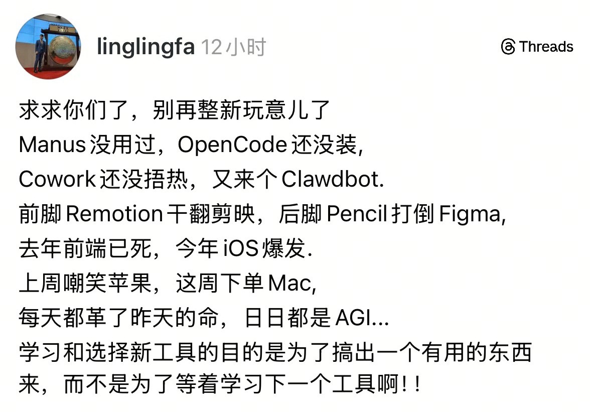 随着 2024 年,2025 年的过去,我发现这个现象还是一直在存在的,并且看长期也会存在,AI 新技术层出不穷,每天都有新的模型,新的工具,号称去替代一系列旧时代的 Saas,于是每当一个新概念被跳进你的视野,你变焦虑了一份 —— 我们会有《2026 年,我的 AI 焦虑症还是没有治好》。